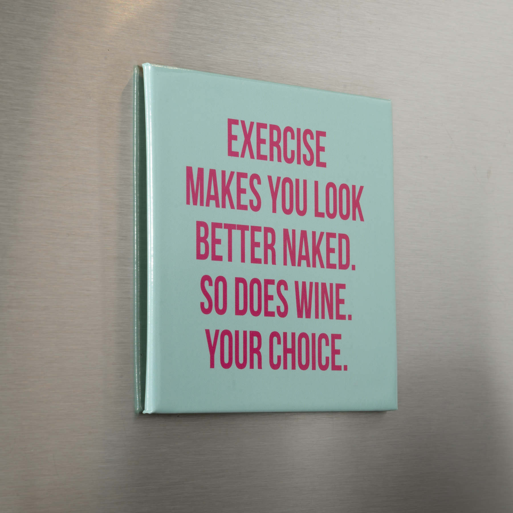 Get ready to have some fun with our NEW refrigerator magnet! This playful magnet proudly proclaims the benefits of exercise and wine with a quirky tone. Show off your humor and unique style while keeping your fridge organized. Choose this magnet and make a statement - both in your decor and in your life choices.